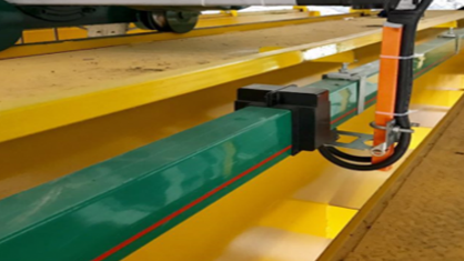 Троллейные электрические шины подвешены к независимым опорам или конструкциям крепления рельсов перемещения, например, к подкрановым балкам, предоставляя электрическое питание для движения. Мобильный механизм подключается к этим шинам через жёстко закреплённый токосъёмник, который перемещается совместно с питаемым механизмом воль троллейного пути.